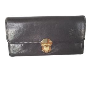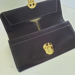 ALBERO Wallet Clutch Leather Black Solid Large Envelope Clasp High Quality Boho