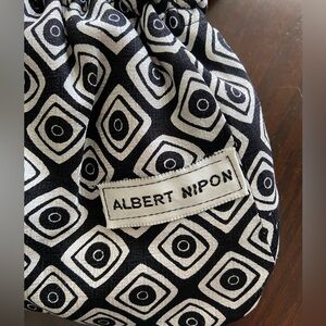 ALBERT NIPON Black & White Silk Geometric Patterned Evening Bag with Brooch