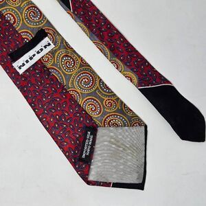 ALBERT NIPON HAND MADE SILK TIE BLACK RED MULTI PATTERN PAISLEY SATIN 4" X 57"