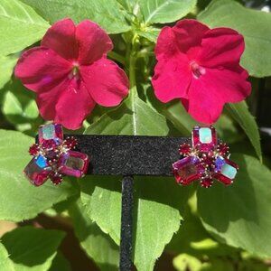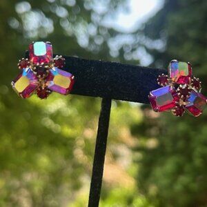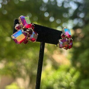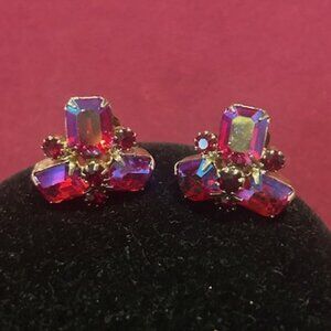 ALBERT WEISS Red AB Rhinestone Cluster EARRINGS