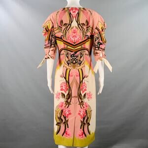 ALBERTA FERRETTI 8 Pink Multi Color Polyester Blend Puffy Sleeve Floral Dress