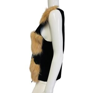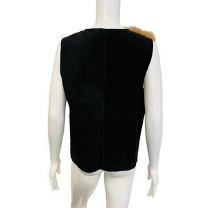 ALBERTO MAKALI Black/Brown 100% Fox Fur And Suede Sleeveless Jacket Size L