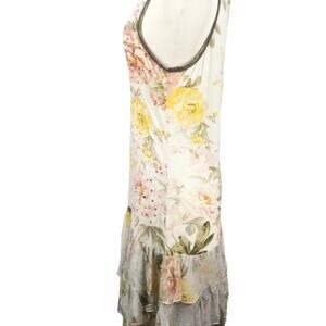 ALBERTO MAKALI Jersey Dress Floral Sequins Tulle Ruffles Hem Sleeveless Small