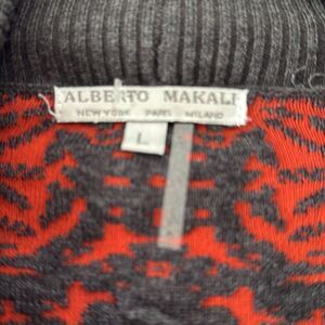 ALBERTO MAKALI SHAWL COLLAR LONG CARDIGAN SWEATER ORANGE GRAY WOOL LARGE