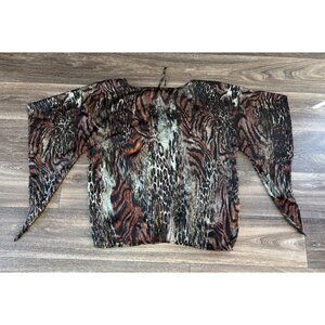 ALBERTO MAKALI WOMENS CASUAL TIE FRONT BLOUSE LARGE ANIMAL PRINT BAT SLEEVE SHEE