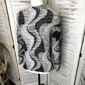 ALBERTO MAKALI Women's Crinkle Sequin Leopard Animal Print Top Blous Black White