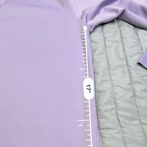 Excellent condition. Kinda in between a sweatshirt and long sleeve shirt. Perfect for working out or casual wear. Pretty lilac color