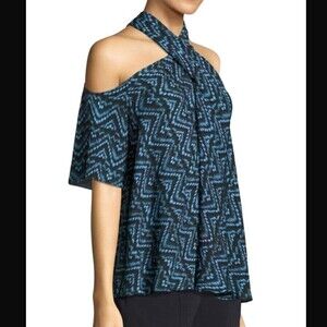 A.L.C 100% Silk Blouse Cold shoulder Y2k Boho Grecian Neckline Size XS Size 0