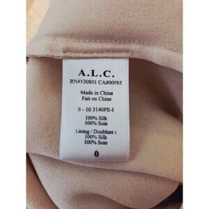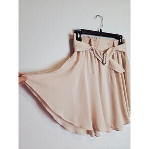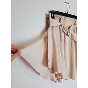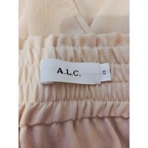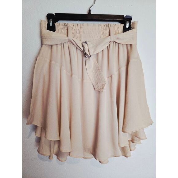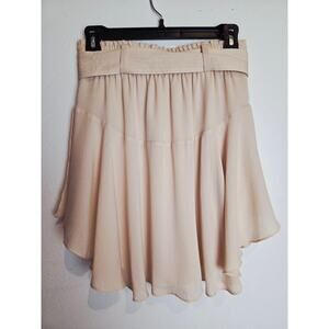 Beautiful and feminine A.L.C. silk skirt in a soft beige/nude tone. Features a flattering high-waisted silhouette, adjustable belt detail, and a flowy, layered hem with subtle side slits for movement. Fully lined in silk for a smooth, luxe feel.