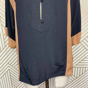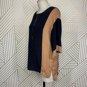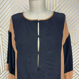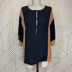 ALC A.L.C Jill Blouse Top Shirt Keyhole Silk Colorblock Black Tan Size US XS
