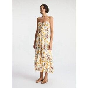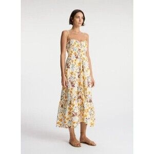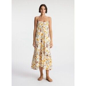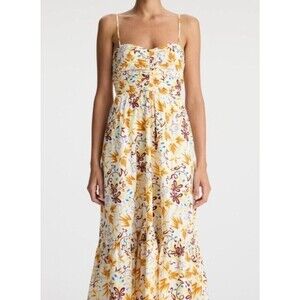 A.L.C A-Line Midi Dress White Multi Lilah Print Flounce Hem Size 10 Vacation