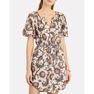 A.L.C. Adelaide Floral Dress Tie Waist Short Puff Sleeve Cotton 6