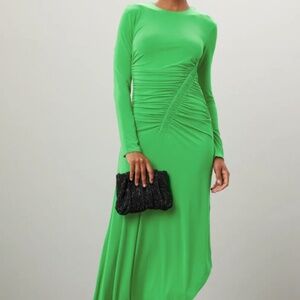 Turn heads in this stunning A.L.C. Adeline dress, crafted in a rich emerald green hue with elegant ruching and a figure-flattering silhouette. This long sleeve maxi dress features a dramatic asymmetrical hem and stretch fabric for both comfort and impact.