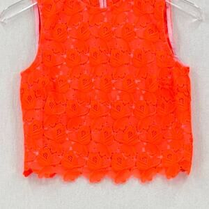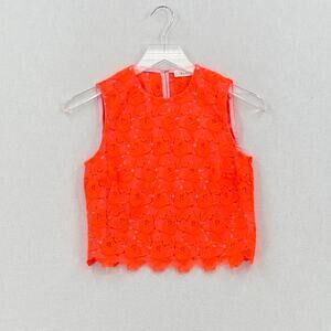 ALC Adriana Crop Top Women 0 Neon Orange Floral Lace Crew neck Scalloped Crochet