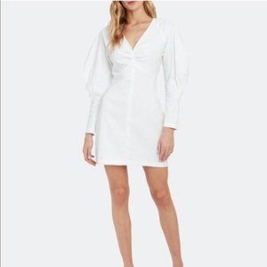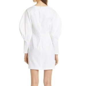 A.L.C. Aila White Long Puff Sleeve Linen Mini Dress