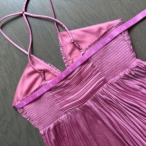 A.L.C. Angelina Plisse Satin Pleated Dress Chateau Rose Pink Halter Midi - 10