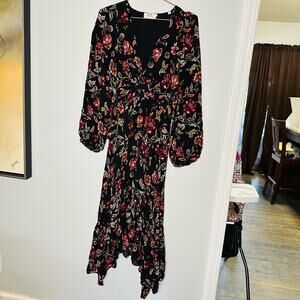 The A.L.C. Annette Floral Silk Mini Long Sleeve Dress in size 6 is a beautiful and feminine dress that is perfect for a variety of occasions. The dress is made of 100% silk and features a flattering V-neckline, bishop sleeves, and a flounce mini skirt. The floral print is both elegant and playful, and the dress is sure to turn heads wherever you go.