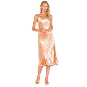 A.L.C. Annex Slip Silk Blend Midi Dress in Pink Rose Gold, Pull On, hugs curves, Flounce Hem, adjustable straps, Sexy Luxurious.