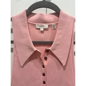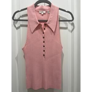 A.L.C. Asher Ribbed Sleeveless Collard Top in Pink Sand Sz XL