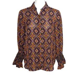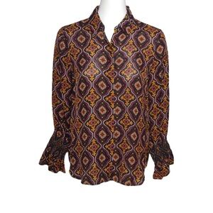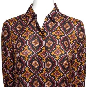 A.L.C. Aubrey Medallion Print Silk Button Down Shirt Top Maroon/Gold Size 4