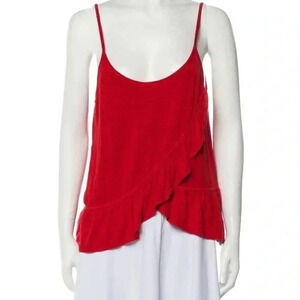A.L.C. 'Ava Ruffle' Red Linen Spaghetti-Strap Tank Size L