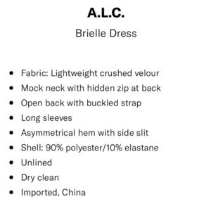 A.L.C BRIELLE CRUSHED VELOUR VELVET MOCK NECK CUTOUT BUCKLE LONG SLEEVE DRESS