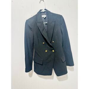 Make a standout statement with this A.L.C. Sedgwick II double‑breasted blazer, featuring sleek black tailoring elevated by bold gold statement buttons. The sharp, structured silhouette in size 2 offers an impeccably tailored fit, cinching at the waist for a polished, feminine edge. A classic notch lapel and full-length sleeves ground its refined aesthetic, while signature gold buttons add a touch of luxe glamour. Fully lined and finished with functional front pockets, it's as practical as it is chic. Ideal for power dressing—wear it over tailored trousers, a dress, or jeans to effortlessly elevate any look.