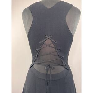 A.L.C Black ESTE Fit & Flare Dress Stretch Sleeveless Back Lace-Up Size Small S