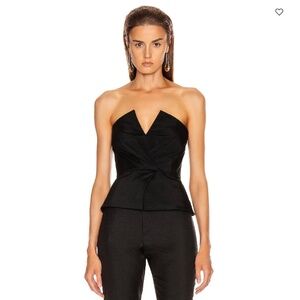 A.L.C black Farrah peplum hem top in black with twisted front and hidden back zip closure. Size US6 new with tags. See size chart for fit information. Picture quality is a little poor will upload more soon!