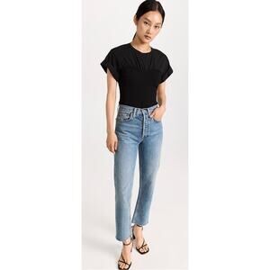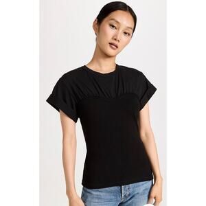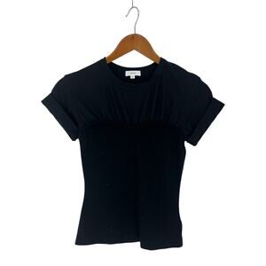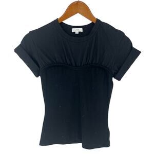 A.L.C. Black Frankie Bustier Detail Cotton Jersey Tee Shirt Size XS In great pre-owned condition. Size XS. Retail: $135.00 This A.L.C. Frankie tee elevates a basic with subtle tailoring and clean lines. Crafted from soft, lightweight cotton jersey, it features a bustier-inspired ruched seam at the front, crew neckline, and short sleeves with fixed cuffs for a structured finish. The sleek silhouette pairs effortlessly with everything from denim to trousers or tucked into a midi skirt for a polished, modern look. Made in the USA, this wardrobe essential is both comfortable and cool. When Laying Flat: Bust Measures Approximately 13", Length 20" (Please note: All measurements were taken by hand and are approximate; slight variations may occur.). I1-30 No trades. No modeling.