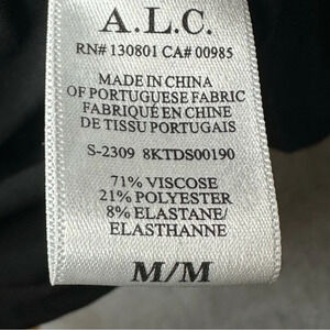 A.L.C. Marie Dress in Black 71% viscose 21% polyester 8% elastane. Made in China. Dry clean only. Fully lined. Pull-on styling. Off shoulder styling. Ruched jersey fabric. ALC-WD504. 8KTDS00190. About the designer: Hollywood stylist-turned-Creative Director, Andrea Lieberman founded A.L.C. in 2009 with the mission to deliver effortlesslyelevated wardrobe essentials that enhances a women's look and conveys an unspoken confidence. Chic, stylish and wearable, A.L.C. is known for their striking prints, versatile dresses and exceptional modern tailoring
