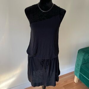 A.L.C. Black Micromodal Asymmetric Lace Panel Blouson Sleeveless Dress Size S