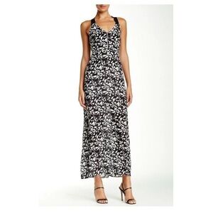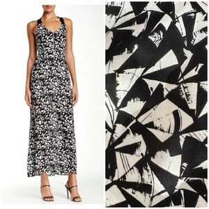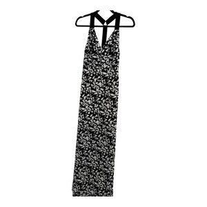 ALC Black Patti Printed Silk V Neck Halter Cross Back Maxi Dress Resort Vacay