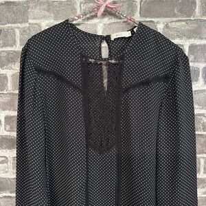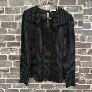 A.L.C. Black Polka Dot 100% Silk Jerry Blouse
