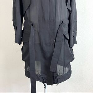 ALC Black Silk Sheer Long Sleeve Hood Full Zip Hobo Lagenlook Utility Jacket