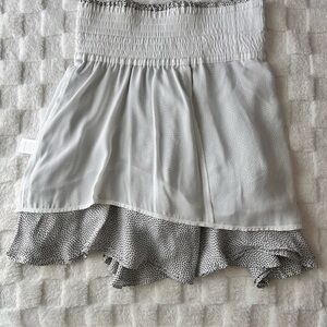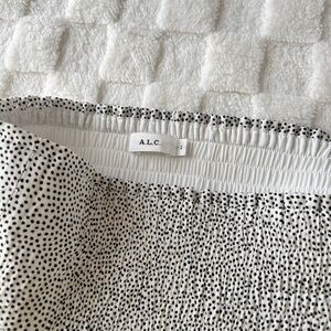 This chic mini skirt by A.L.C. showcases a playful bubble silhouette in classic black and white. The smocked waistband ensures a comfortable fit, while the tiered design adds a touch of flair, perfect for casual outings or resort wear. It has some loose threads in two areas