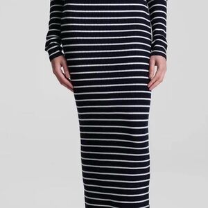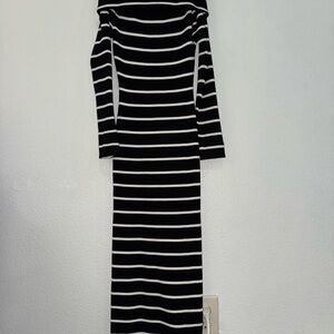 Elegant black and white striped maxi dress. Long sleeves. Perfect for any occasion.