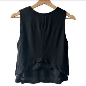 A.L.C. Black sleeveless tiered blouse with soft silk underlay, size small. Reverse Hi lo with the hi in the back.