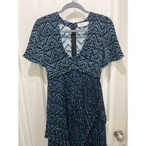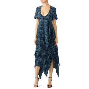 A.L.C. Blue & Black Kylia 100% Silk Asymmetrical Midi Dress Sz 2