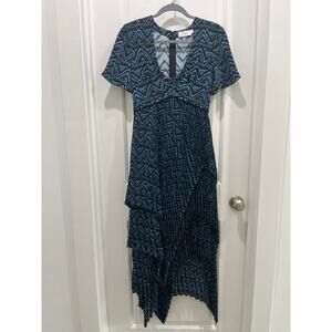 A.L.C. Blue & Black Kylia 100% Silk Asymmetrical Midi Dress Sz 2