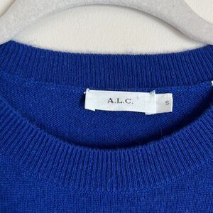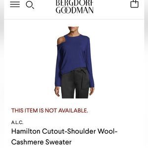 Stylish blue sweater with a unique cutout shoulder design. Perfect for a chic look.