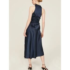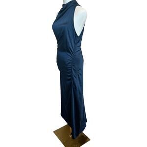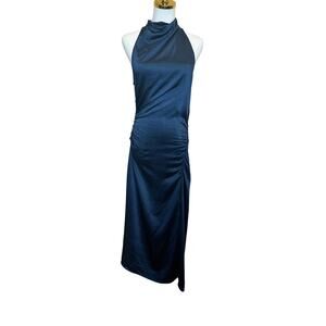 A.L.C. Blue Satin Halter Gown Size 8 Cocktail Asymmetric Ruched Midi Dress $500