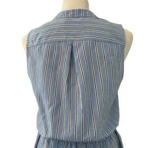 Chic and stylish A.L.C blue striped sleeveless dress perfect for any occasion. Features a flattering tie waist for a tailored fit. Side slit pockets, curved hem, lined skirt. Casual, beach, vacation, cruse, spring, summer,
