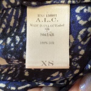 A.L.C. Blue and Black Printed Silk Button front Drop Hem Swing Dress Extra Small