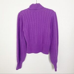 A.L.C. Callas Cable Knit Long Puff Sleeve Turtleneck Sweater Purple Wool Casual