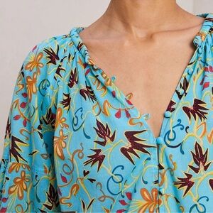 A.L.C women's Capri top grotto multi aqua floral 100% cotton blouse