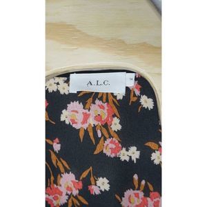 A.L.C. Carlo Silk Wrap V Neck Floral Print Long Sleeve Mini Dress Size 14 Black