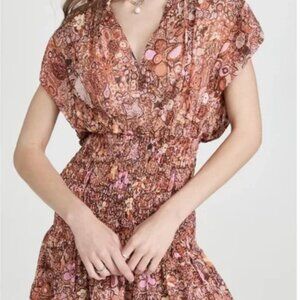 A.L.C. Carly Smocked Print Silk Mini Dress, Size 2