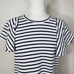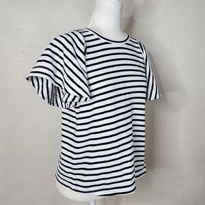 A.L.C Carrie Black and White Striped Flutter Sleeve Top Size Small