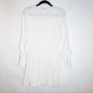 Flared dress in mini length. Stretch-crepe with fluted cuffs. Hook and concealed zip fastens at back. Dry clean. Viscose 96%, Elastane 4%.